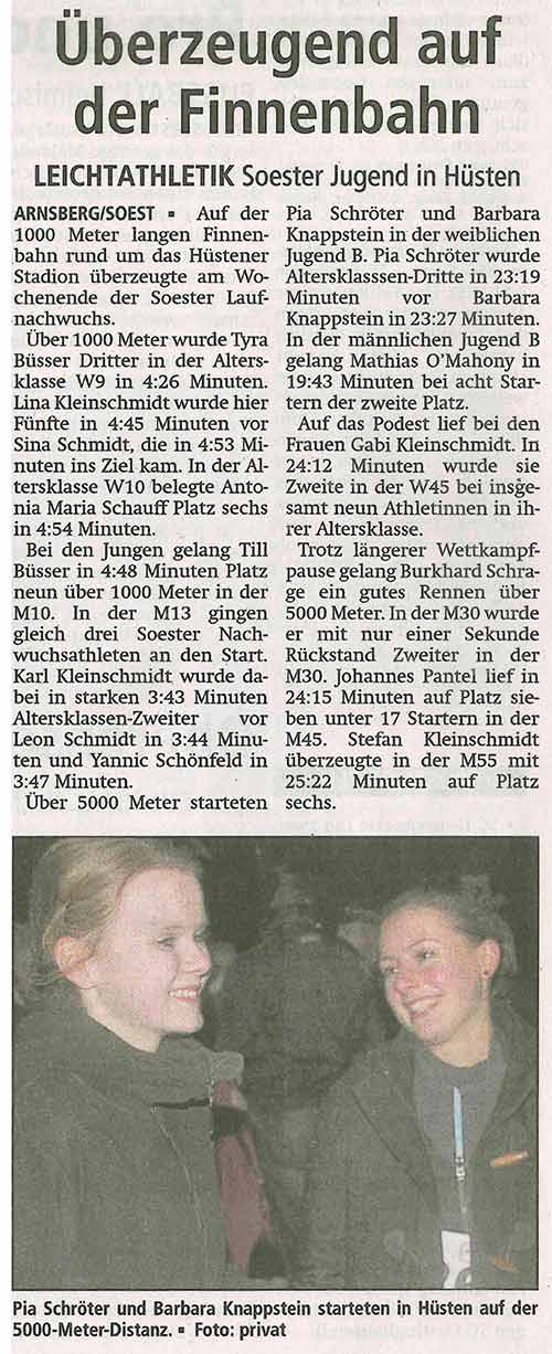 Kreis Soest/Hamm Am Sonntag fand mit dem Halbmarathon der letzte Teil der Hammer Winterlaufserie 2009 statt. Mit einem abermals großen Teilnehmerfeld von fast 800 Startern konnten die Veranstalter wieder sehr zufrieden sein. Mit dabei waren 52 Teilnehmer aus der Soester Region, die bei durchwachsenen Laufbedingungen wieder erstklassige Ergebnisse erzielten.