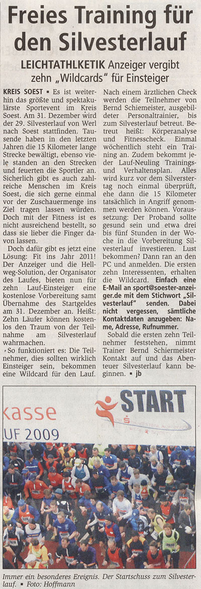 September 2010: Vorbereitung für den Silvesterlauf in der Region